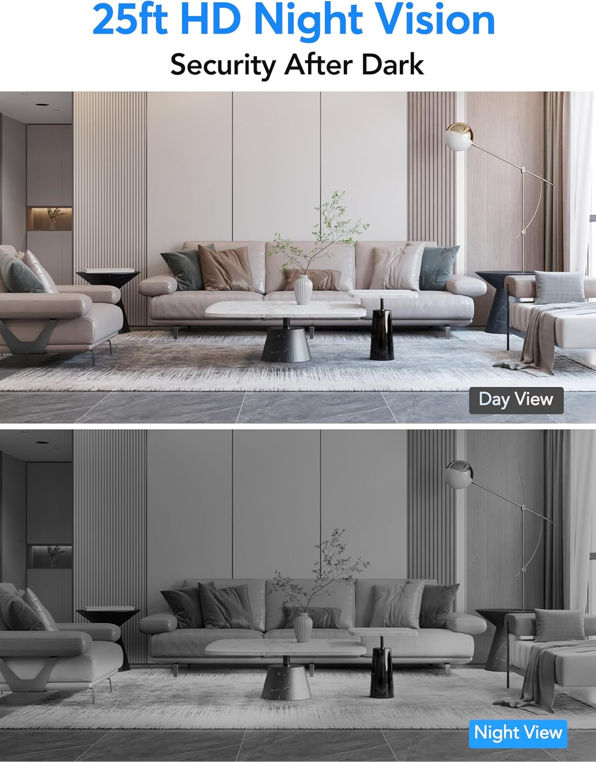 • Night Vision up to 25 Ft.: Keep an eye on everything at home, even after the lights go out. This indoor camera for home captures clear footage up to 25 feet away, so you won’t miss a moment of your baby’s bedtime, your pet’s nighttime antics, or any household activity in the dark.