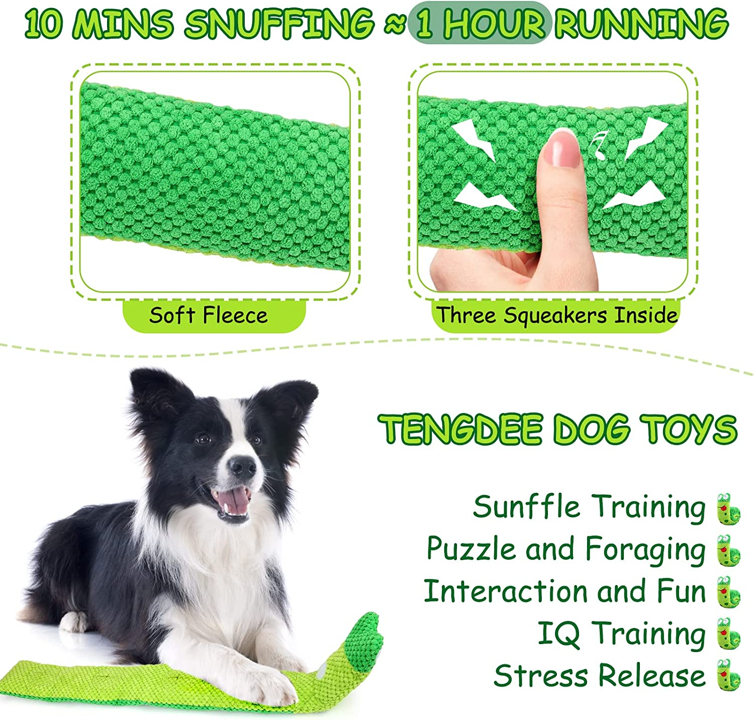 • Training Foraging and Puzzle:The snuffle toy can either hover into the shape of a snail or unfold into a stick shape, with hidden holes for food. You can hide some food in the toy so that the dog sniff, find food and get food. It helps to consume your dog’s energy and lose weight. It helps to training their foraging skills and puzzles