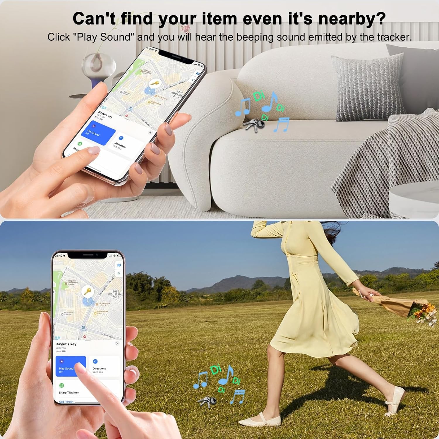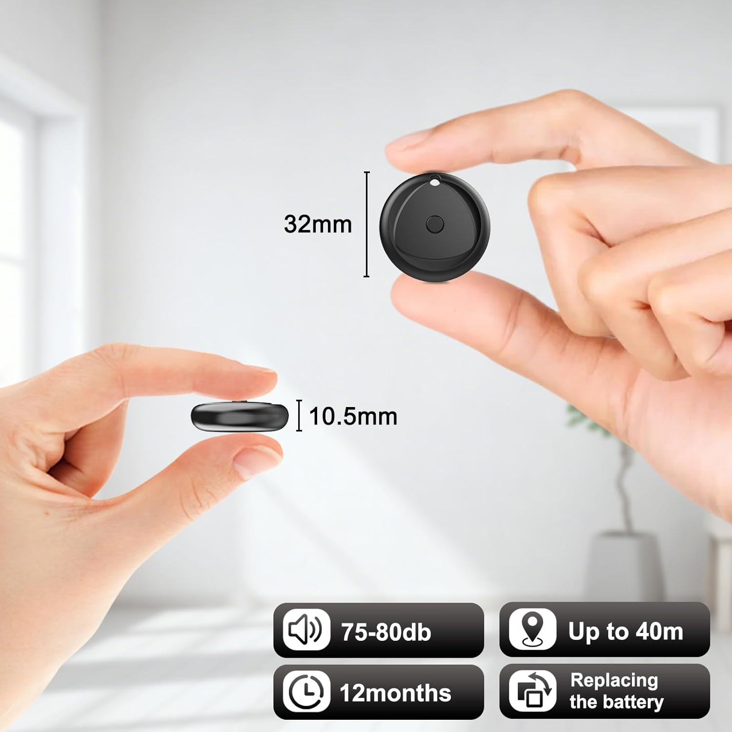 - 【Easily locate your valuables】Never lose your keys, wallet, or bag again! It is a little smart key finder and locator that helps you keep track of your everyday items with ease. Whether it's your luggage, bag, keys or other essentials, just tap the Find My app or ask Siri for help, and the tag will emit a loud 80-100 dB ticking sound to help you locate your property. Whether it's between the sofa cushions or in your jacket pocket, the tracker tag guides you precisely and easily to the item you're looking for.