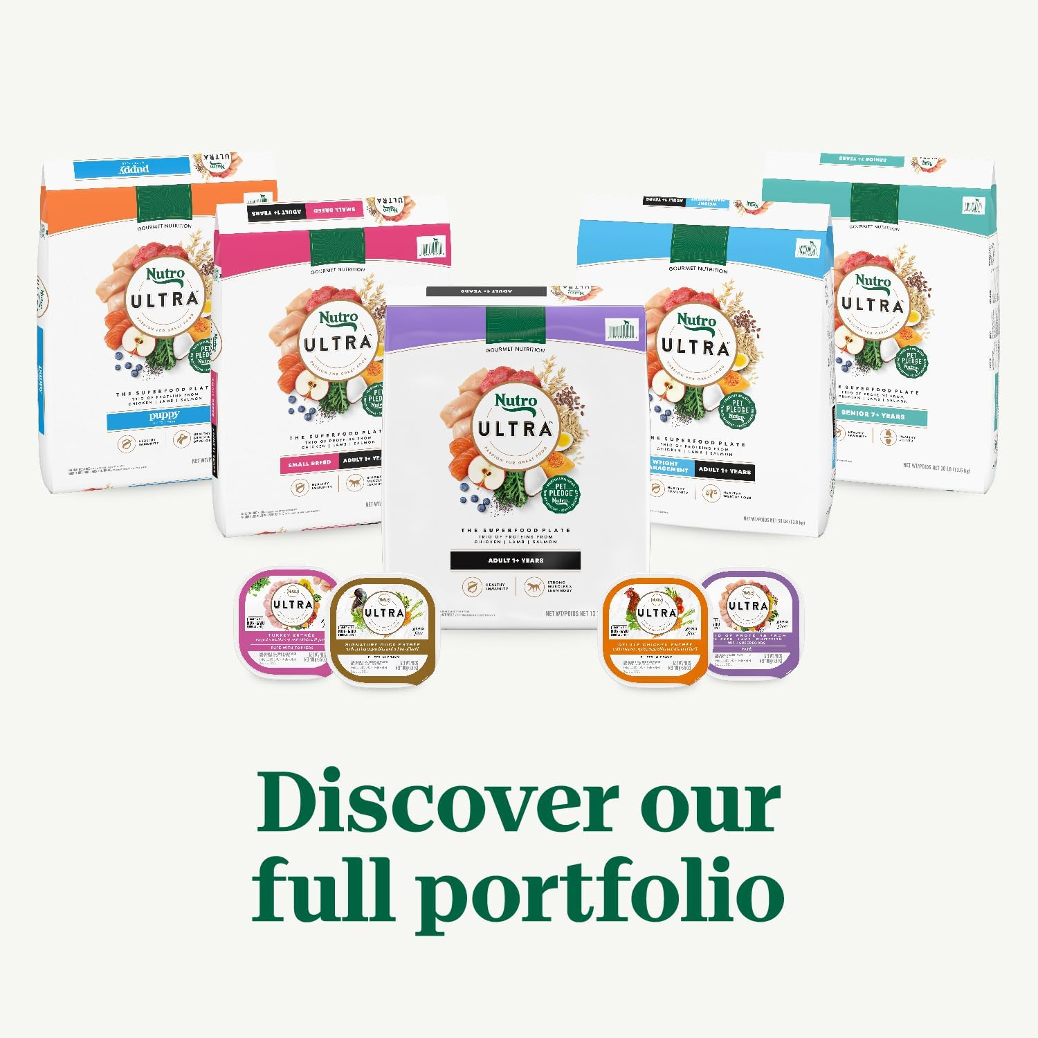Dogs deserve to enjoy their dry dog food as much as we enjoy our food That’s why Nutro Ultra Senior High Protein Dry Dog Food delivers elevated, nourishing recipes to make mealtime an enjoyable experience for both pets and their parents Specifically designed for your senior dog’s unique needs Crafted with real chicken as the #1 ingredient, your dog is served an appetizing and appealing dry dog food meal Nutro Ultra Senior High Protein Dry Dog Food with a Trio of Proteins from Chicken, Lamb, and Salmon provides essential antioxidants to support the immune system and essential nutrients to support whole-body health Formulated with natural sources of Glucosamine and Chondroitin for healthy joints and a nutritious blend of fat and carbohydrates for healthy energy, Nutro Dry Dog Food understands that your pet’s health and vitality begins with what they eat