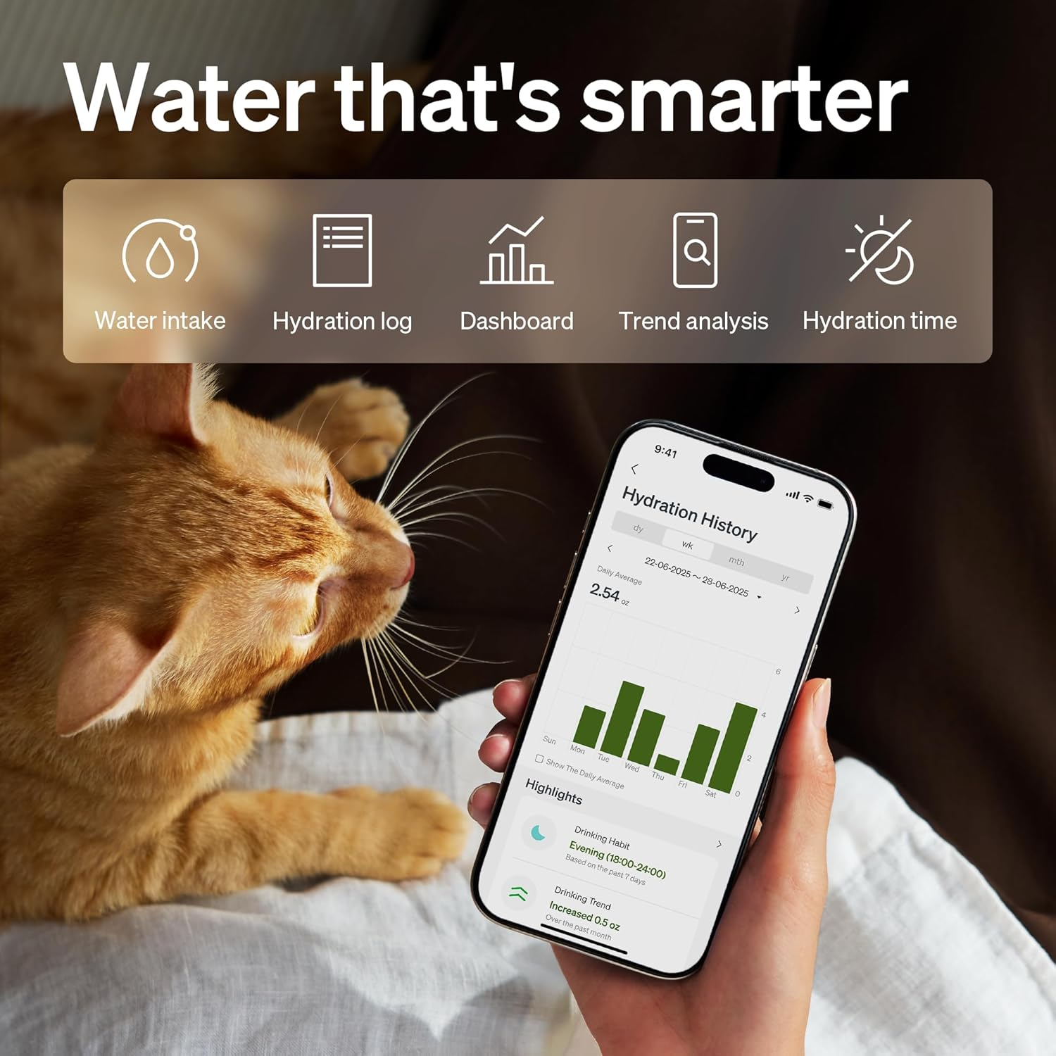 - Hydration Data that Goes Deeper: Via Dockstream 2 cat water fountain stainless steel, track your pet's water intake with more precision and accuracy than ever before, cat fountain water bowl with improved scale and 5 Ghz connectivity. See their hydration history, favorite time to drink, and other important trends via cat water fountain, so you can spot changes early in the pet water fountain app.