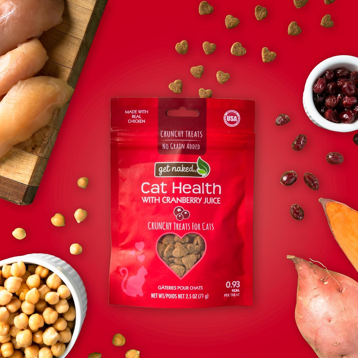 Get Naked® Cat Health with Cranberry Juice are grain-free treats specially formulated with cranberries, a natural antioxidant, to promote a healthy urinary tract. These tasty crunchy treats help clean your kitty’s teeth during chewing for purr-fectly fresh breath. Grain free Specially formulated with cranberries, a natural antioxidant, to promote a healthy urinary tract Help clean your teeth during chewing Formulated especially for your cat’s unique needs Added taurine